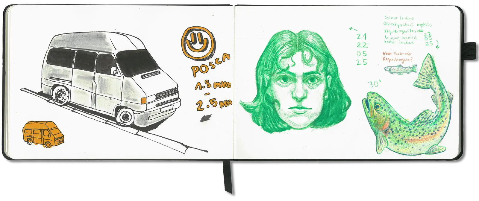 Hier gebe ich einen kleinen Einblick in meine Skizzenbücher. An gewissen Zeichnungen habe ich digital weitergearbeitet.